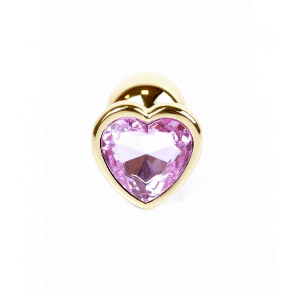 Анальна пробка S з рожевим каменем у формі серця, металева, золотиста, 7 х 2.7 см