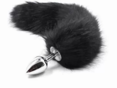 Металевий анальний стимулятор із чудовим чорним лисячим хвостиком.