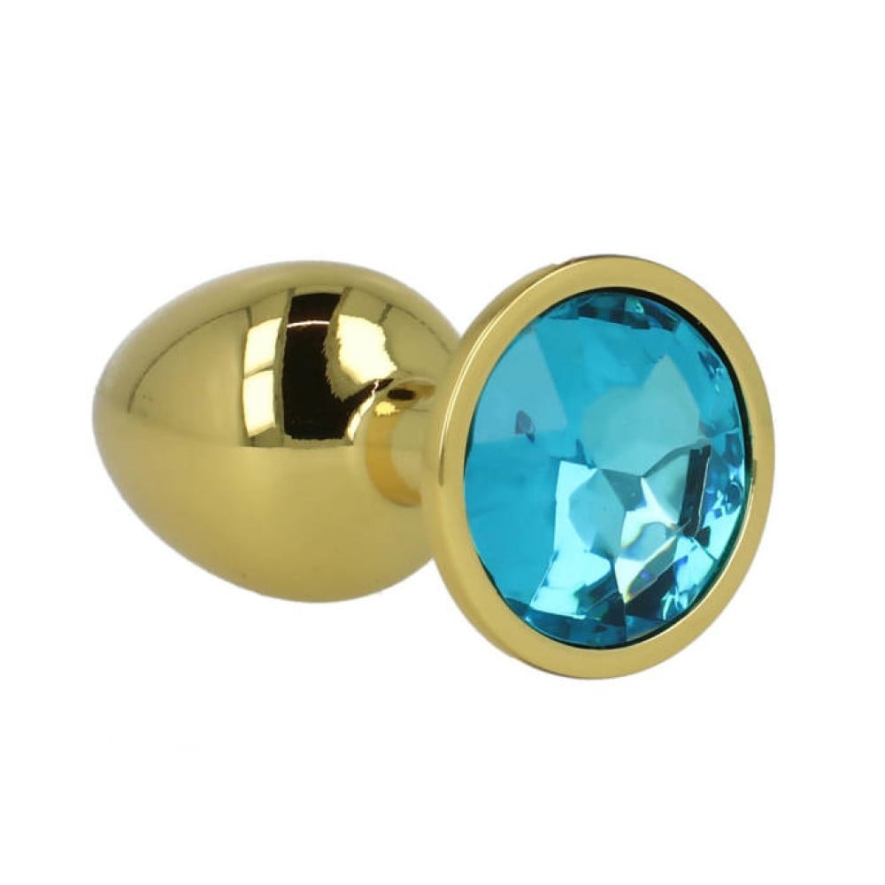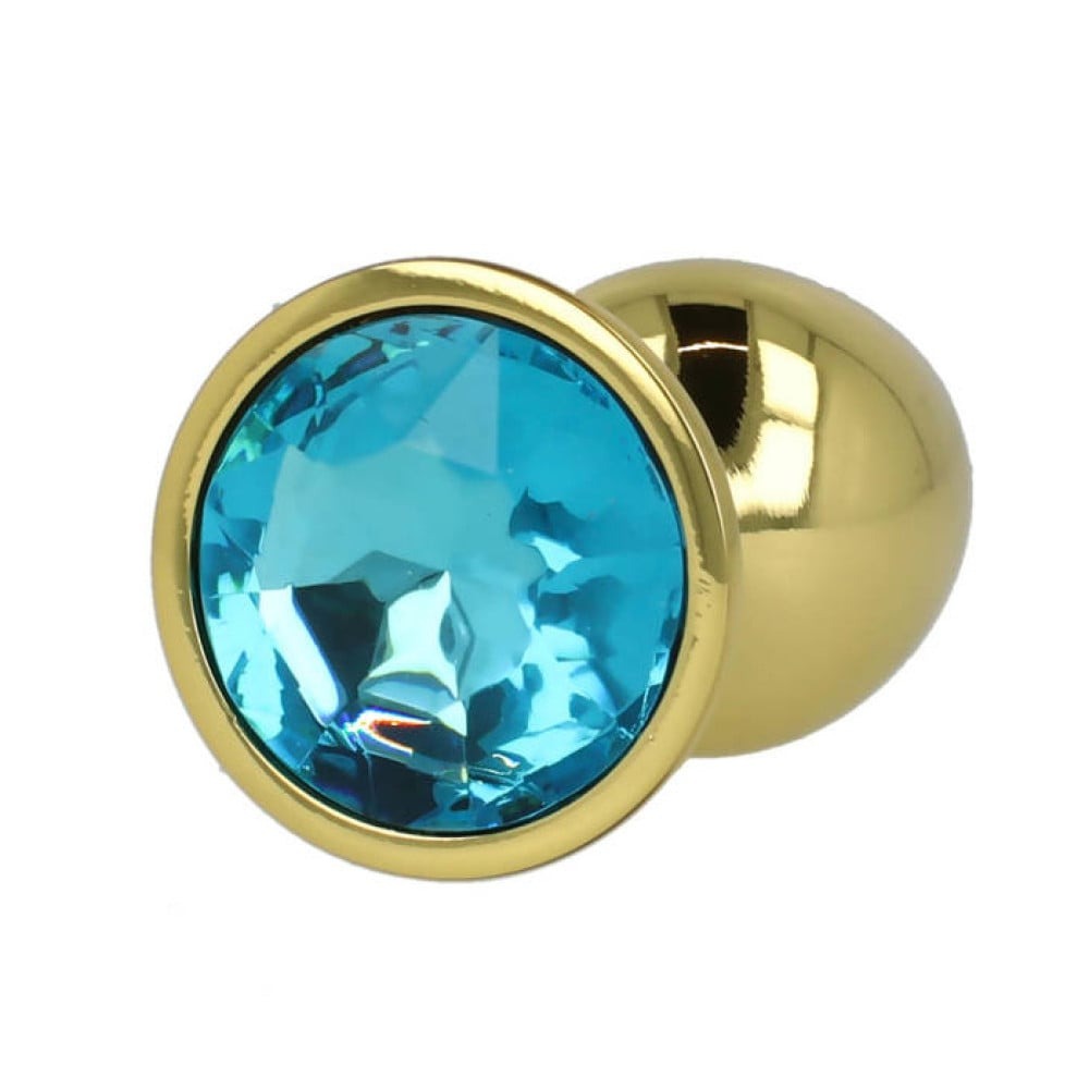 Анальна пробка з блакитним каменем chisa hi-basic, золотиста