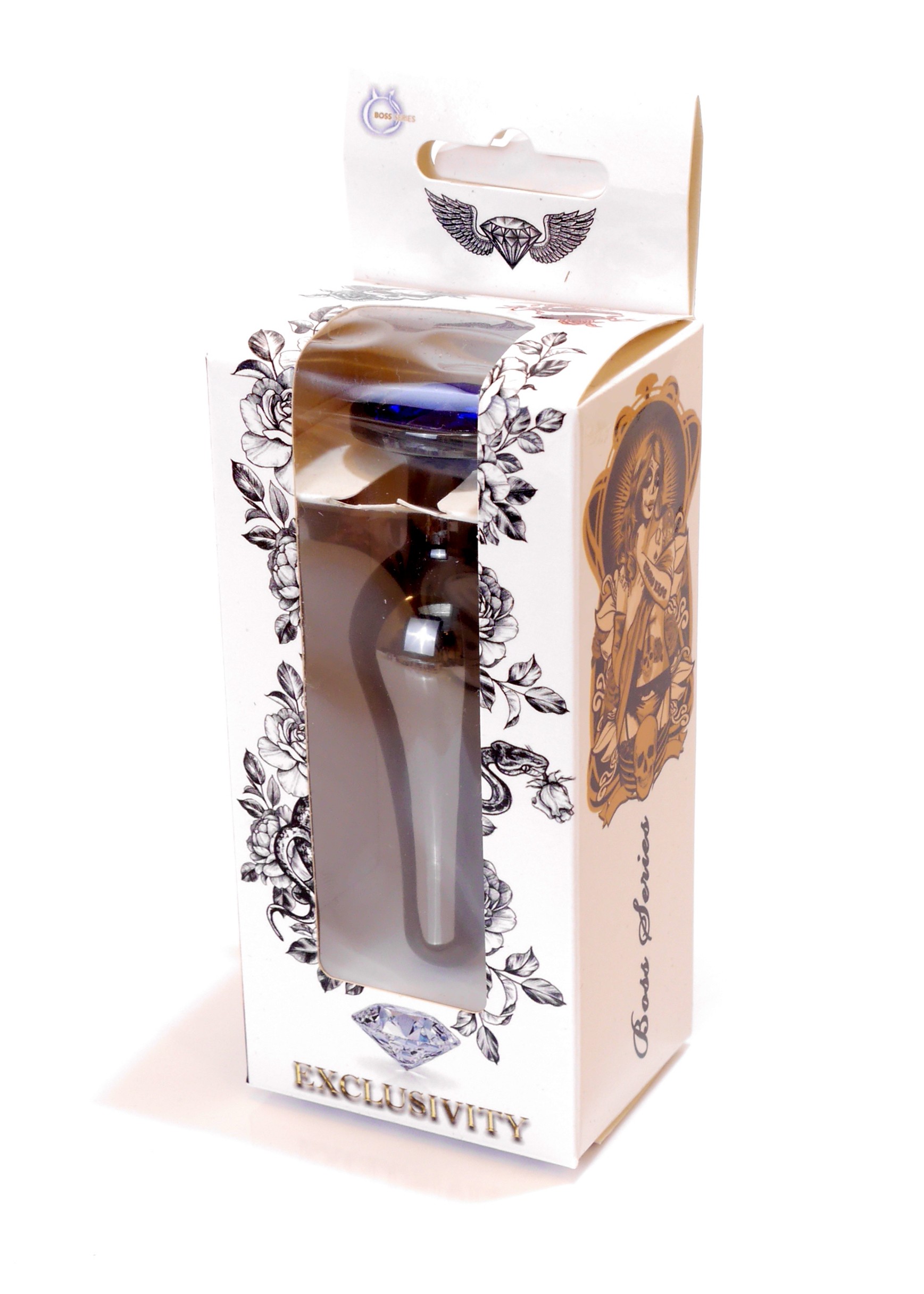 Анальна пробка з полірованого алюмінію з каменем plug-jewellery dark silver butt plug-dark blue