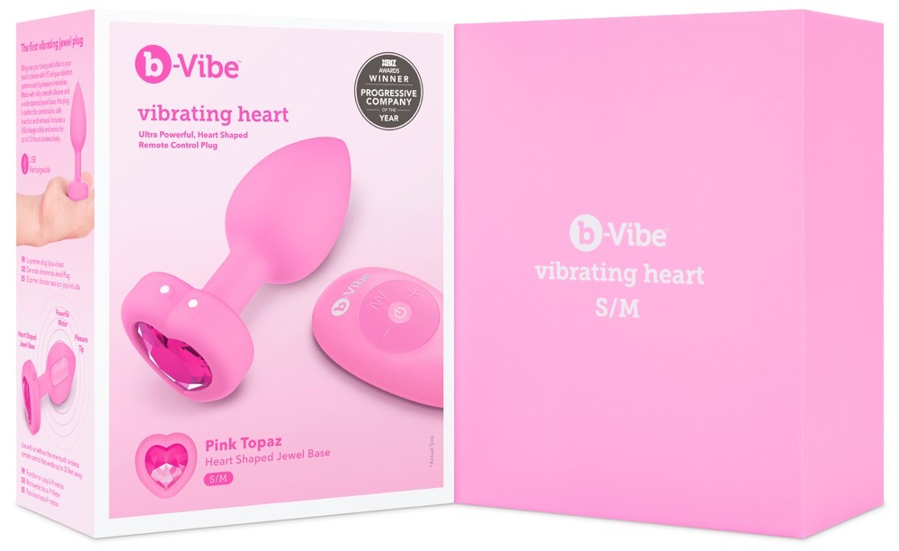 Конічна анальна пробка з вібруючим серцем b-Vibe з блискучим дорогоцінним каменем у формі серця в пробці. Корок у формі серця забезпечує безпечне анальне використання без ковзання. Це означає, що її можна носити протягом тривалішого періоду часу, при цьому анус чудово прикрашений.