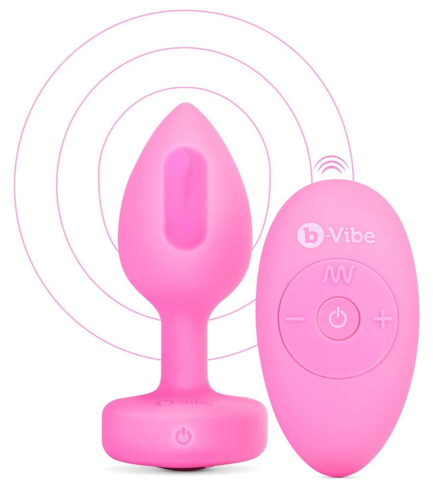 Анальна пробка з вібрацією та пультом керування b-vibe vibrating heart plug s/M pink
