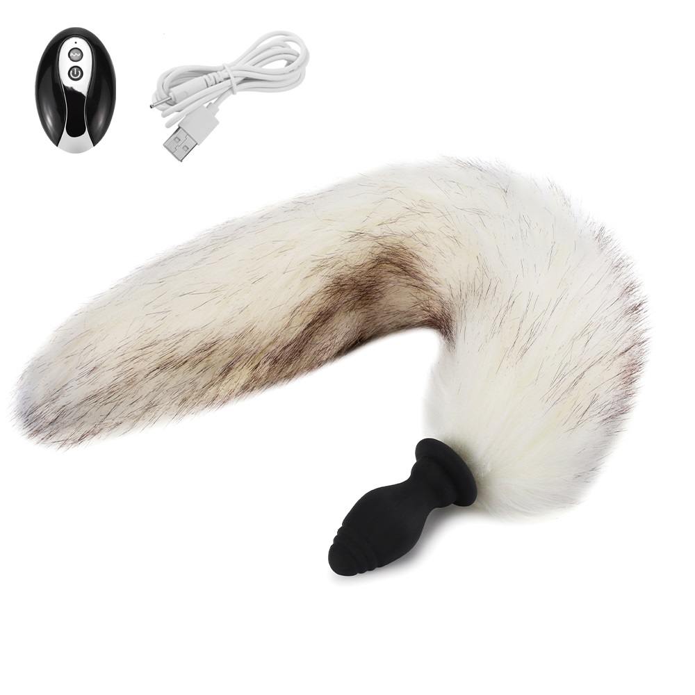 Анальна пробка з хвостом з вібрацією на пульті керування Runyu, білий