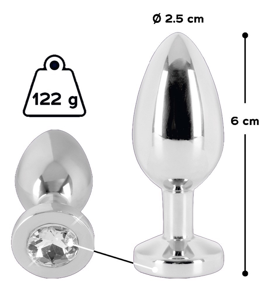 Анальна пробка із прозорим кристалом Jewel Buttplug Small срібляста, 5.6 х 2.4 см