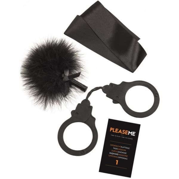 У набір входять: стрічка для очей, якою так само можна зв' язувати перо для лоскоту наручники