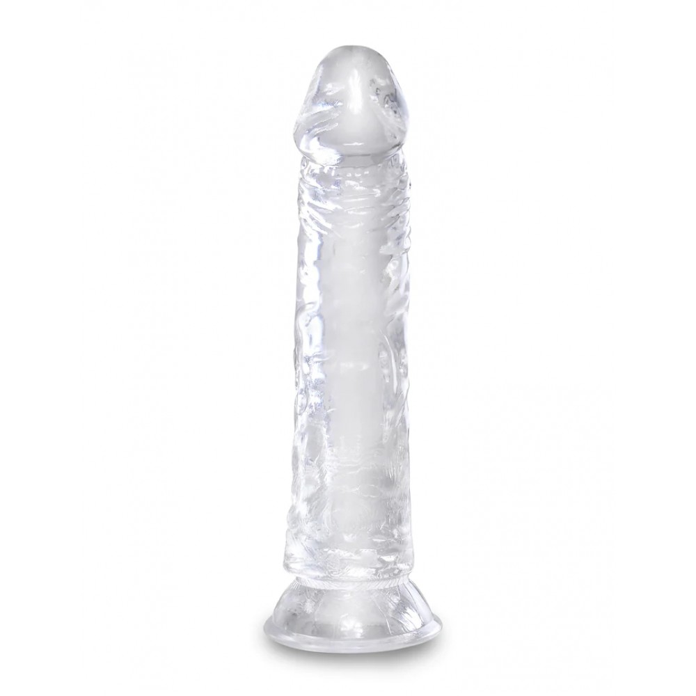 Ділдо реалістичний на присосці Clear прозорий, 21.8 х 4.6 см Прозорий реалістичний фалоімітатор досить великого розміру зможе подарувати вам ті відчуття, про які ви давно мріяли! Його зовнішній вигляд – чистий, легкий і дуже збуджуючий! Реалістичний рельєф, у свою чергу, подарує вам яскраві враження, стимуляція від добре окресленої голівки, великого розміру та візерунка вен швидко доведе вас до незабутнього оргазму! Ви можете прикріпити фалоімітатор до трусиків для страпону, за допомогою присоски, якщо хочете порадувати другу половинку! Присоска також дозволить мастурбувати без використання рук, якщо ви помістите фалоімітатор на плоску та гладку поверхню. Скористайтеся лубрикантом на водній основі, особливо якщо хочете застосувати іграшку анально. До та після використання обов' язково промивайте фалоімітатор та обробляйте антисептиком для секс-іграшок.