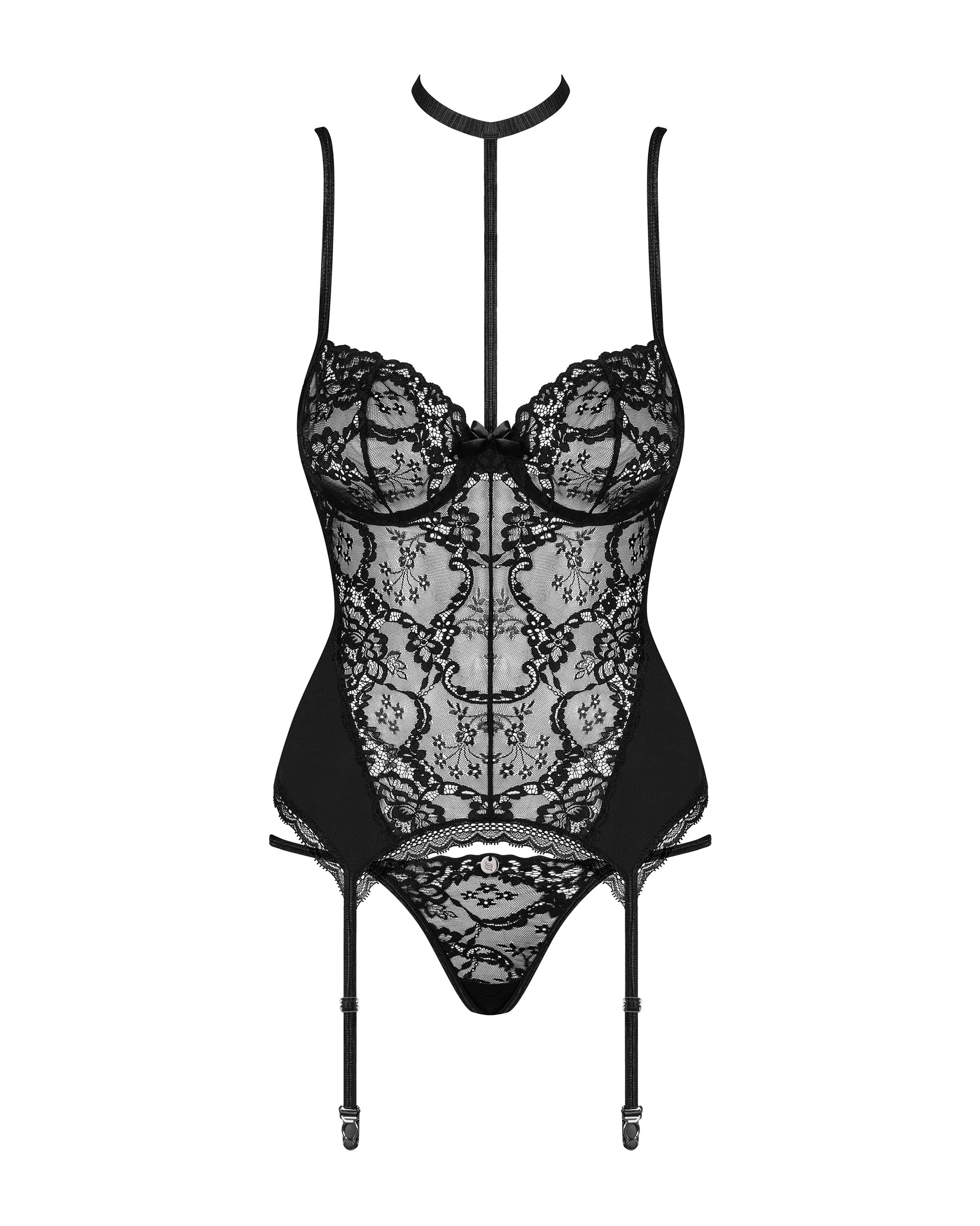 Як щодо одержимо-чуттєвої спідньої білизни спокусливого жіночного кольору, що збуджує апетит? Представляємо корсет, який ідеально підійде сьогодні ввечері – Raquelia. декольте підкреслює класичний знімний чокер, напівпрозоре мереживо, прикрашене квітковим візерунком, блискуча прикраса між грудей і неймовірно зручний крій… додамо до цього божественний чорний колір, чудово сексуальне шнурівку на спині і багато прикрашені стрінги. ви вже знаєте, що єдине, що вам потрібно це носити його кожен день!