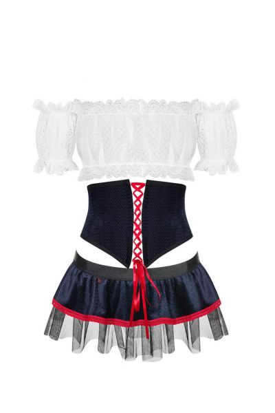 Готова підкорити коханого своїми чарами? хочеш взяти його в свій солодкий полон? ігровий костюм дівчини слов’янки obsessive slaviana допоможе втілити в реальність всі ваші відверті фантазії!____кокетлівий дизайн костюма__напівпрозорий білий топ додасть образу сексуальності _ _ два коротких рукава не з’єднані з топом _ _ сексуальний структурований ремінь з корсетною зав’язкою підкреслить витонченість твоєї талії__грайлива коротенька спідничка зав’язується ззаду на бант__приємні матеріали: топ і рукава (90% поліамід, 10% еластан), пояс і спідниця (92% поліестер, 10% еластан)__
