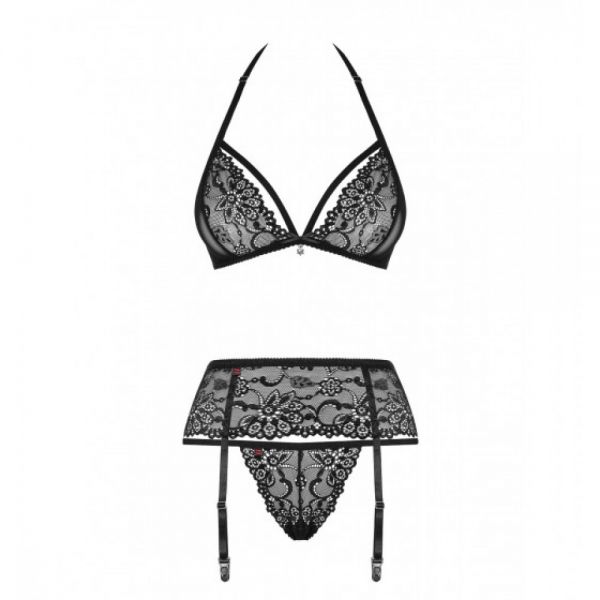 Комплект з поясом для панчіх obsessive 838-seg-1 3 pcs set black s/M