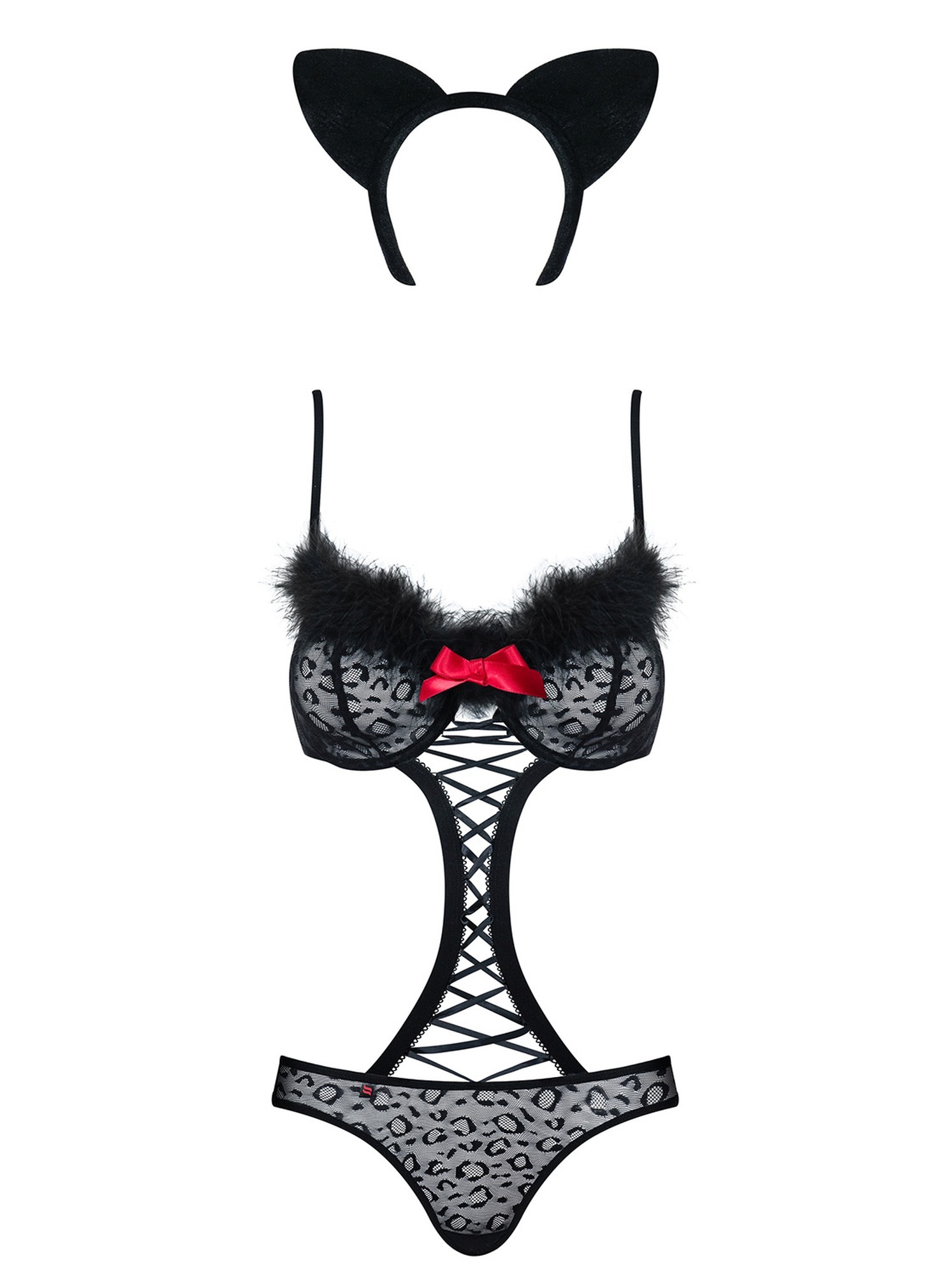 Костюм боді кішки чорний obsessive 3 предмета gepardina l / XL