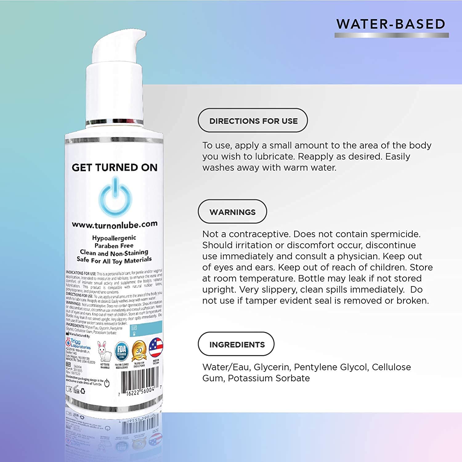 Зволожуюча формула: мастило Turn On на водній основі спеціально розроблене для зволоження та омолодження шкіри під час використання.
