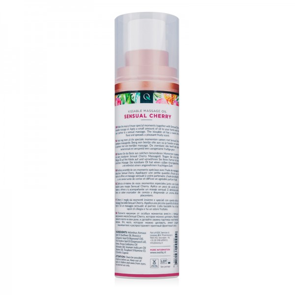 Насолоджуйтесь розслаблюючим ефектом масажу Exotiq. Ця масажна олія має приємний аромат вишні. За допомогою дозатора нанесіть невелику кількість олії на руки, потріть руки, щоб розігріти олію, і ви готові до розслаблюючого масажу. Масажне масло має шовковисту м' якість і поживний ефект.