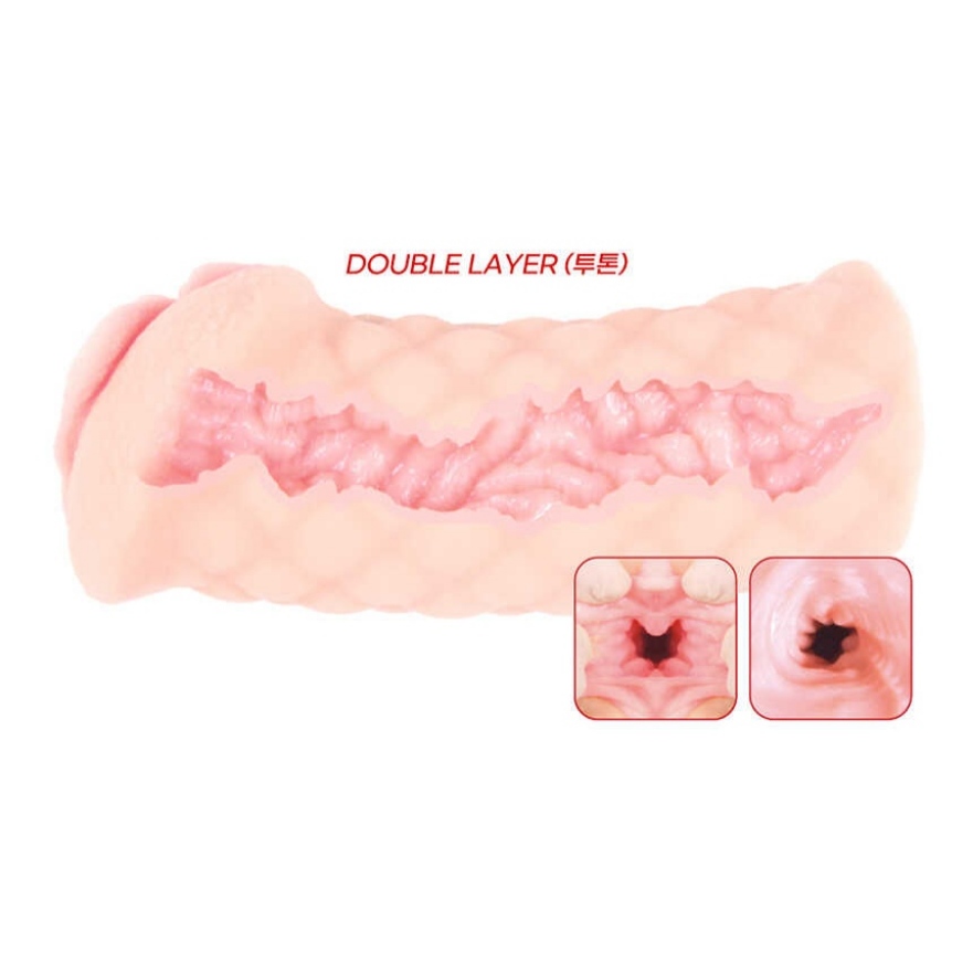Соковита вагіна із спокусливими статевими губами та вузьким рожевим тунелем із колекції Double Layer. Мастурбатор виготовлений із надзвичайно приємного на дотик матеріалу зі спеціальними подвійними шарами, що нагадують людську шкіру. Усередині нього знаходиться безліч масажних виступів, які масажуватимуть статевий член при кожному русі. Гнучкий матеріал дозволяє будь-яке розтягування піхви в міру потреби.