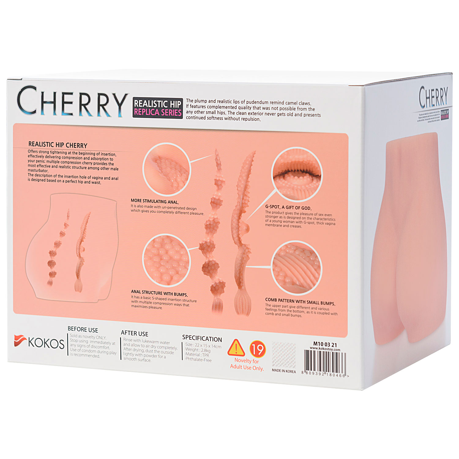 Сідниці Черрі завжди готові для вас! Цей великий мастурбатор є незамінним для будь-якого чоловіка з великими бажаннями. Сідниці та піхву здаються реалістичними, а мастурбатори мають два отвори з різною внутрішньою структурою. Отвір у піхву має ребристу та ворсисту внутрішню структуру, а отвір ануса більш вузький і має ворсисту структуру.