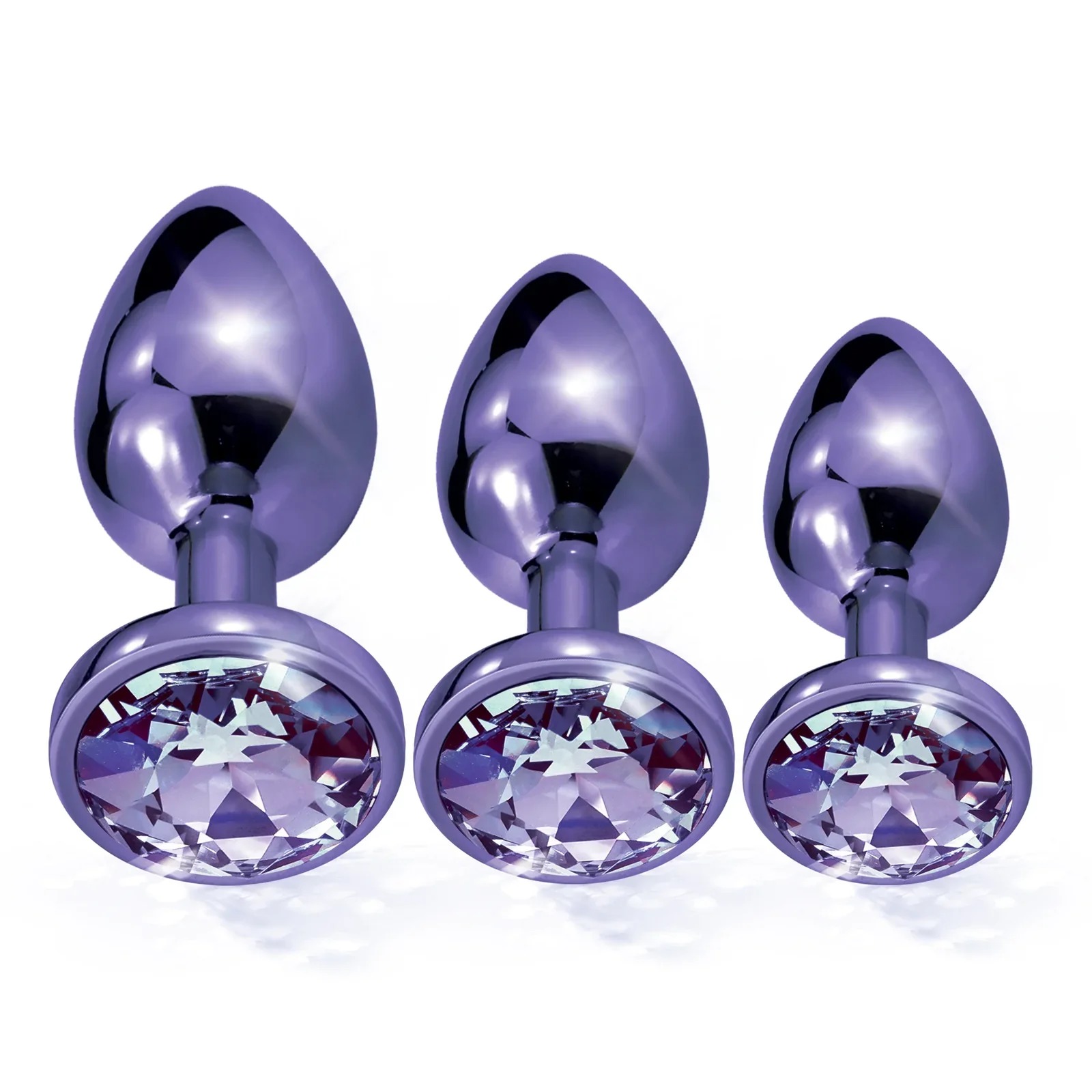 Набір анальних пробок global novelties nixie metal butt plug trainer set, purple metallic