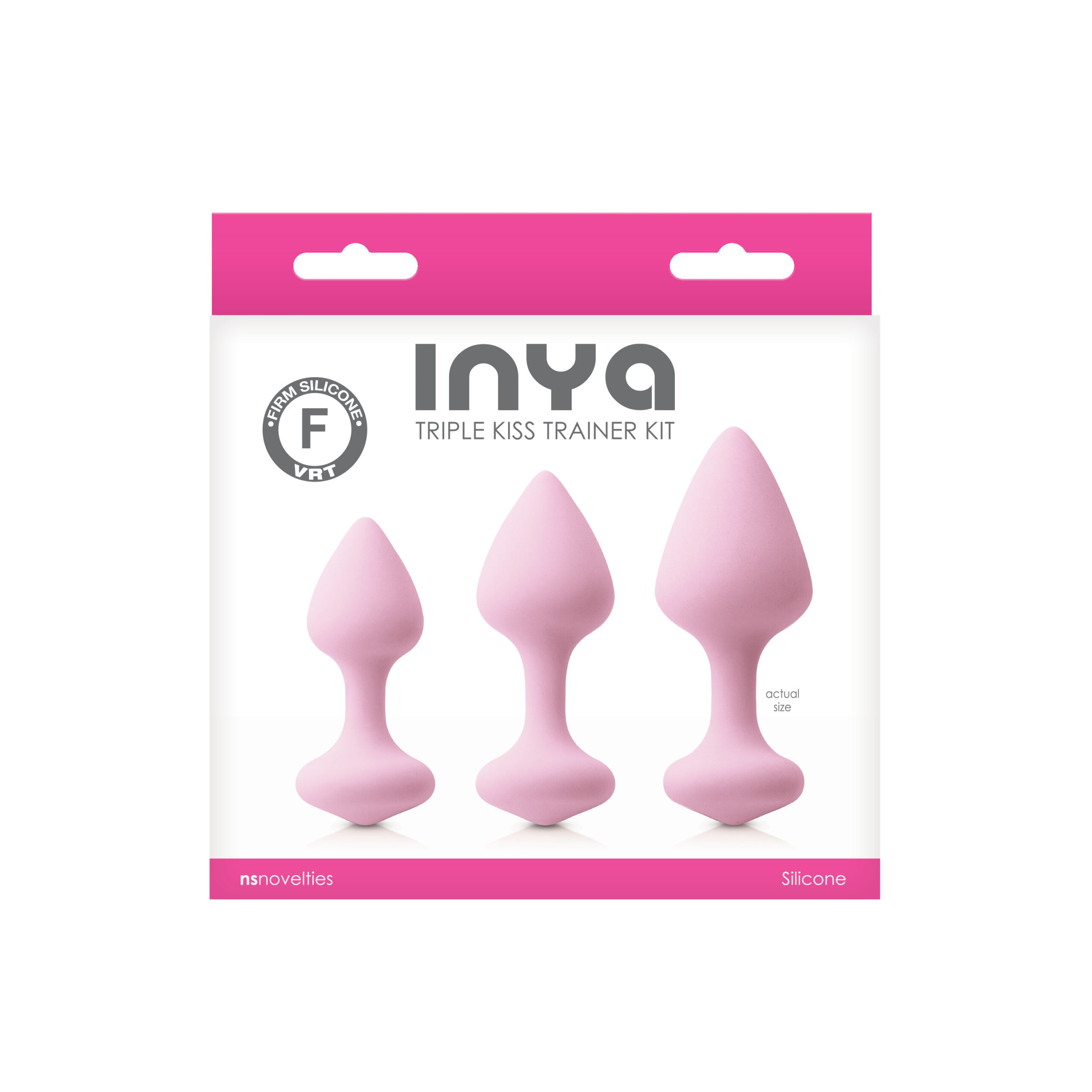 Inya Triple Kiss Trainer Kit включає набір з трьох твердих, шовковистих гладких силіконових пробок, що звужуються для легкого введення і зручної посадки.