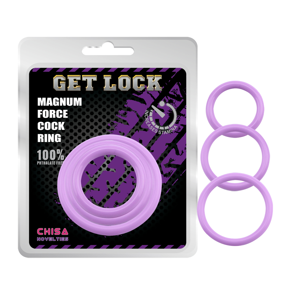 Набір ерекційних кілець chisa get lock magnum force cock, фіолетові, 3 шт