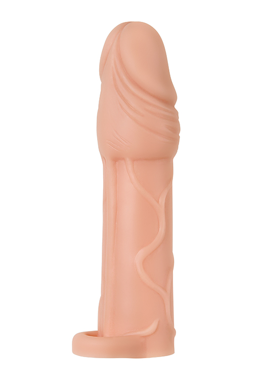 Додайте додаткову товщину та довжину вашому члену – миттєво! Збільшіть свій обхват і розмір, надівши це еластичну порожнисту насадку на пеніс. Наконечник додає твердих 8,9 см для епічних поштовхів. Кільце на мошонку утримує його на місці і забезпечує додаткову стимуляцію, тому ви обидва можете грати всю ніч безперервно. Вашому партнеру сподобаються реалістична форма та стимулюючі текстури, що ідеально підходять для злиття з вашим власним виступом і утримують мастило. Цей зручний подовжувач пеніса розтягується, щоб щільно облягати будь-якого чоловіка. Повністю водонепроникний, він легко очищається за допомогою засобу для чищення іграшок та ополіскування теплою водою.