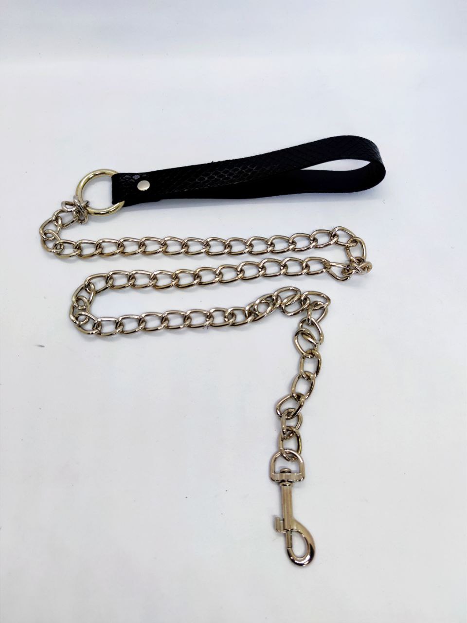 Чорний металевий повідець із прикріпленою петлею для зап' ястя можна легко під' єднати або від' єднати за допомогою карабінчика.