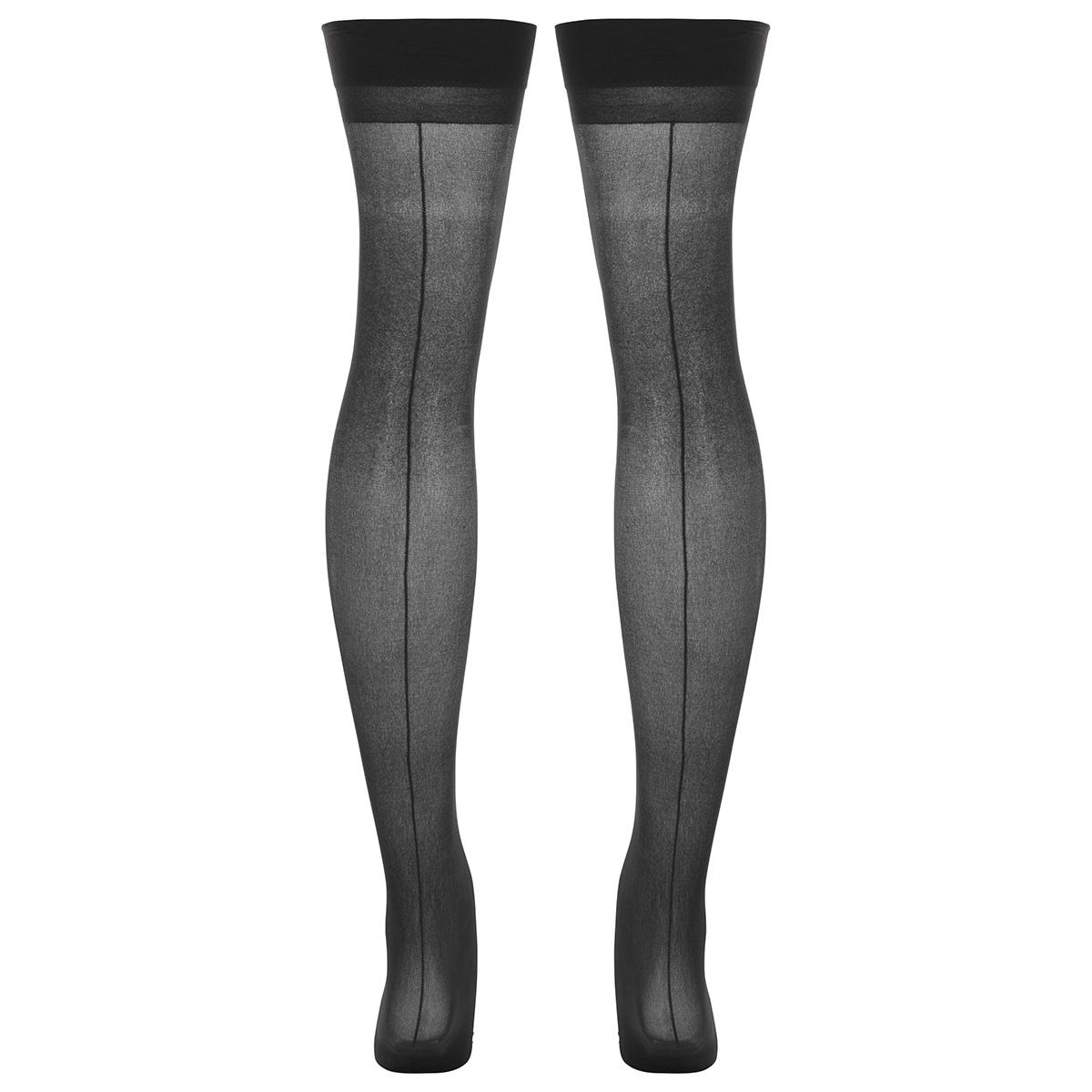 Панчохи Rene Rofe Lingerie з широкою стрічкою зверху та швом ззаду, чорний