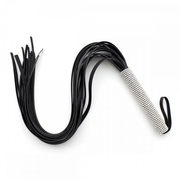 Чорний батіг з рукояттю, оповитою блискучими стразами, виглядає сексуально і зачаровує в руках пані.