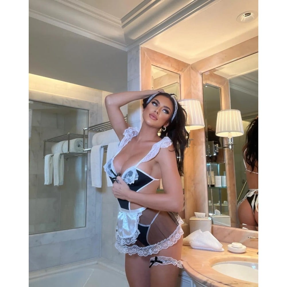 Унікальне поєднання пристрасті та шарму в цьому комплекті дозволить вам поринути у світ спокуси та насолоди! Спокусливе чорне боді з вирізами на талії підкреслить всі ваші жіночні вигини, створюючи ефектний контраст між відвертістю та загадковістю. Ця смілива деталь надає трохи таємничості та дозволяє відчувати себе по-справжньому спокусливою. Напівпрозора спідниця з фартухом, що огортає ваші стегна і надає образу покоївки особливу чарівну нотку, створює грайливий ефект, приховуючи та розкриваючи одночасно пікантні деталі, даючи можливість поглядам блукати вашим спокусливим оголеним тілом. Мереживний чепчик є третім вишуканим аксесуаром цього комплекту. Він надає образу впізнаваності, невинності та ніжності, створюючи додатковий контраст із спокусливістю інших нарядів. Цей елегантний штрих зробить вашу сексуальність більш загадковою та привабливою. Мереживна підв' язка приковує погляди до вашої ніжки, надаючи вишуканості та грайливості. Ця маленька деталь підкреслить вашу впевненість і дозволить вам відчути себе по-справжньому сексуальною та бажаною. Чорне боді Напівпрозора спідниця з фартухом Мереживний чепчик Мереживна підв' язка Рукавички на фото не входять у комплект, проте ви можете придбати сексуальні рукавички на нашому сайті. Пухнастий тиклер також стане чудовим доповненням до цього зухвалого образу, надаючи йому грайливості.
