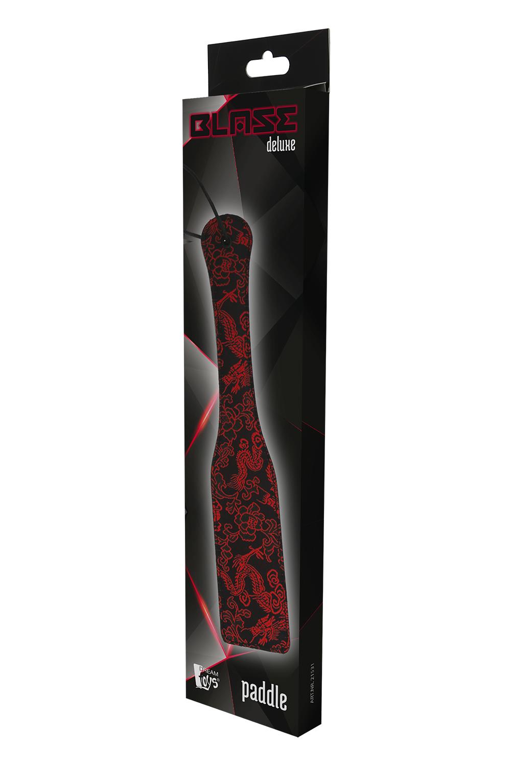 Шлепалка blaze deluxe paddle для гри в БДСМ з вишивкою на лицьовій стороні і гладка зі зворотного боку. різні текстури викличуть різні відчуття. має зручний ремінець на руку. шлепалка трохи гнучка для м’якої або твердої прочуханки, використовуйте її з обережністю.
