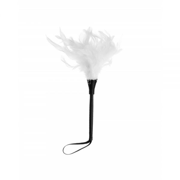 Тіклер з білим пір’ям на чорній ручці ds fetish, білий
