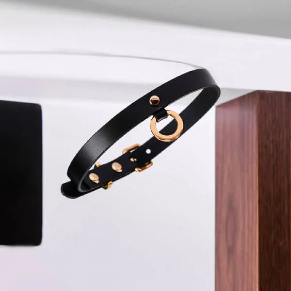 Тонкий нашийник (чокер) з італійської шкіри, чорного кольору, thin upko