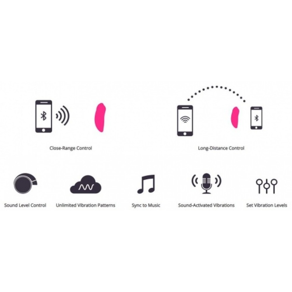 Девайс також може працювати і без програми. Підключивши його до смартфону по Bluetooth, ви зможете керувати вібратором в трусики, перемикаючись між 8 різними вібраціями.