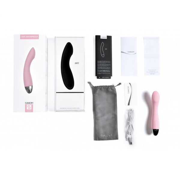 Інтелектуальний вібромасажер для точки g svakom amy-це водонепроникна секс іграшка виготовлена для максимального стимулювання ерогенних зон з урахуванням анатомічної форми жіночих внутрішніх органів. __інтелектуальний режим імітує навички використання іграшки протягом всього процесу, від спокусливої прелюдії, потім сексуального дражнення, до сильних пульсацій і аж до численних оргазмів. __просто натисніть клавішу s, і вас чекає чудова сексуальна подорож. __благодаря водонепроникної технології (ipx6) цей девайс також запрошує вас насолодитися чуттєвим задоволенням в душі або у ванній. __всі компоненти, що використовуються при виготовленні іграшок, є безпечним матеріалом як для людей, так і для навколишнього середовища. __svakom amy виготовлений з бархатистого силікону, приємного на дотик не викликає алергії матеріалу. __особливості: _ _ – ніжний і оксамитовий силікон _ _ – тиха робота мотора _ _ – інтелектуальний режим сваком _ _ – анатомічна форма _ _ – стимуляції точки g _ _ – водонепроникний. _