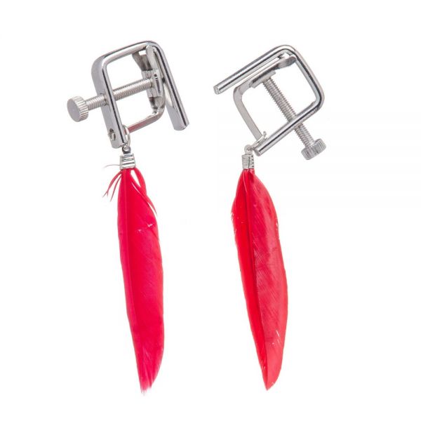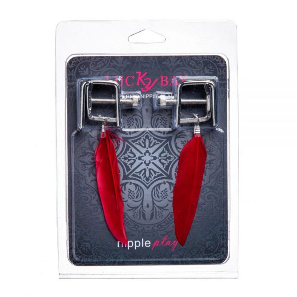 Затискачі на соски квадратні lucky bay nipple play з червоними пір’ячками