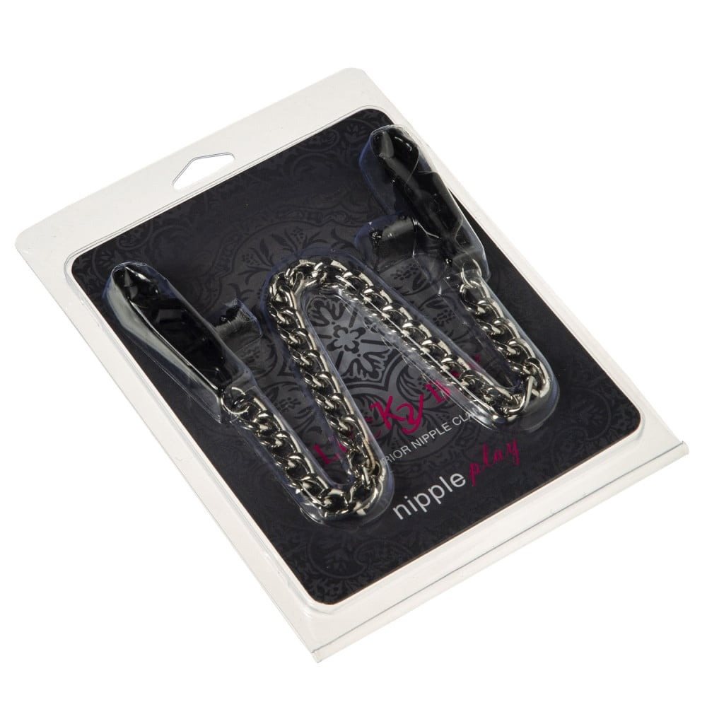 Затискачі-прищіпки на соски lucky bay nipple play на товстому сріблястому ланцюжку