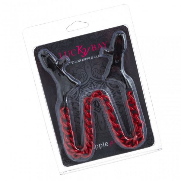 Затискачі-прищіпки на соски Lucky Bay з червоним ланцюжком