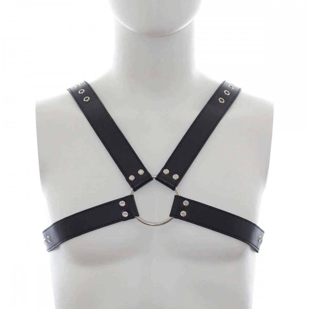 Збруя чоловіча хрестоподібна ds fetish, екокожа, чорна