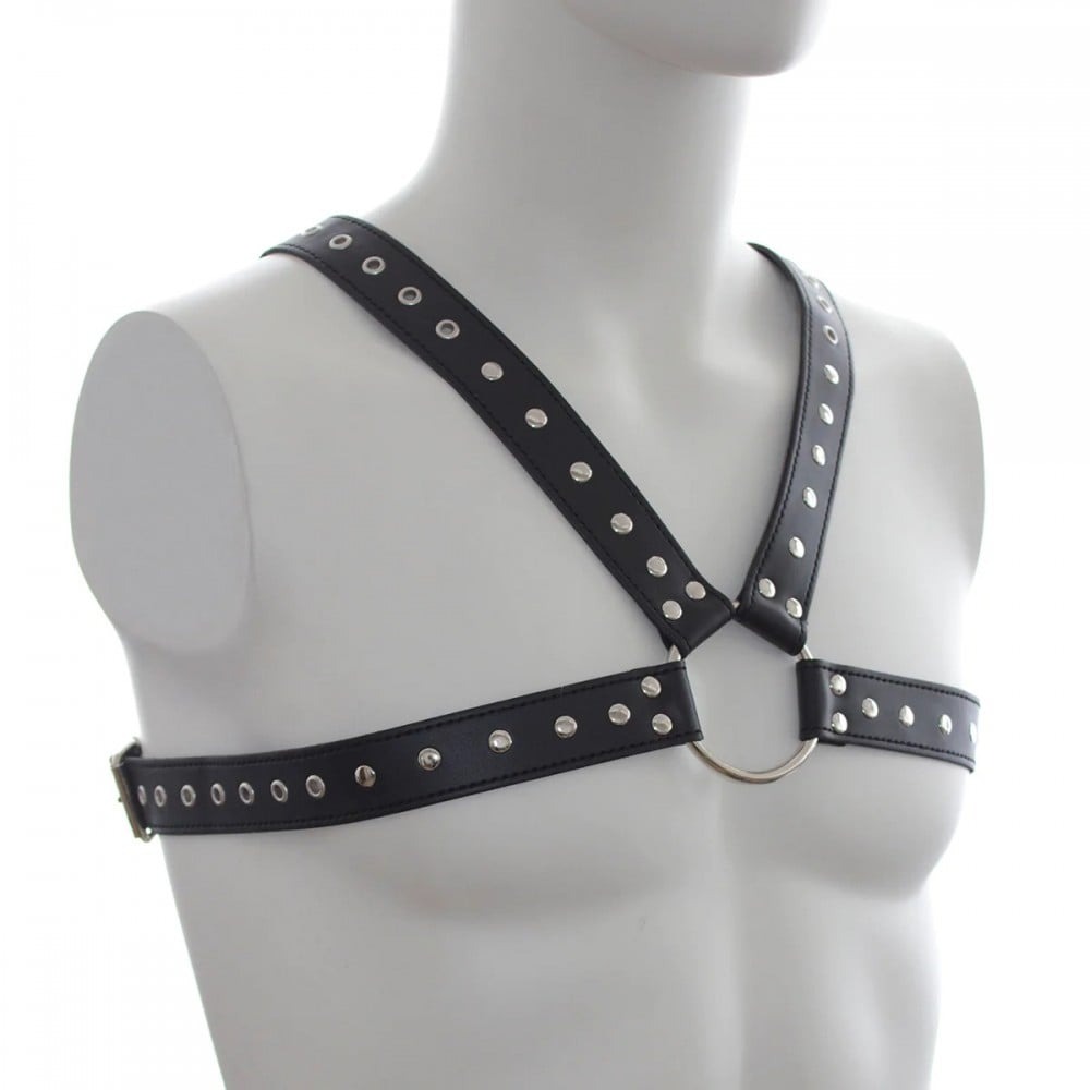 Збруя чоловіча хрестоподібна із заклепками ds fetish, екокожа, чорна